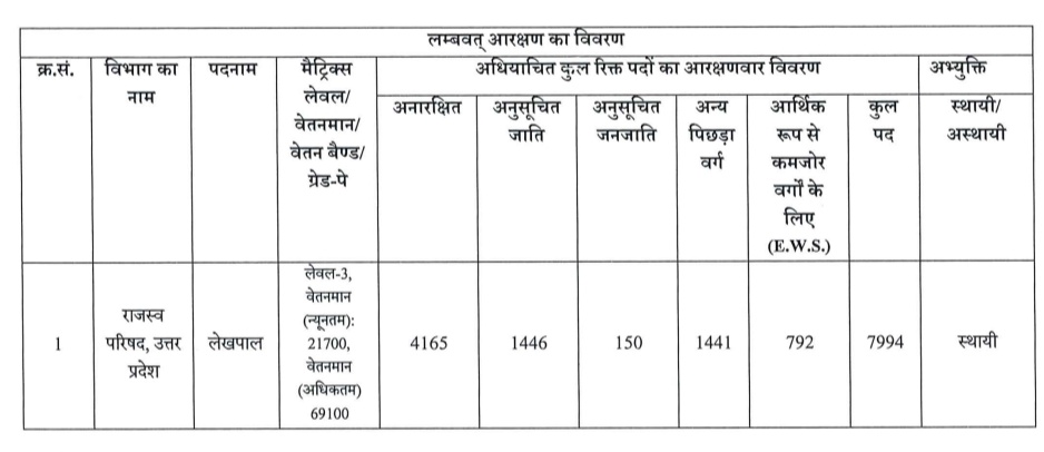 UPSSSC Lekhapal Recruitment कुल पद